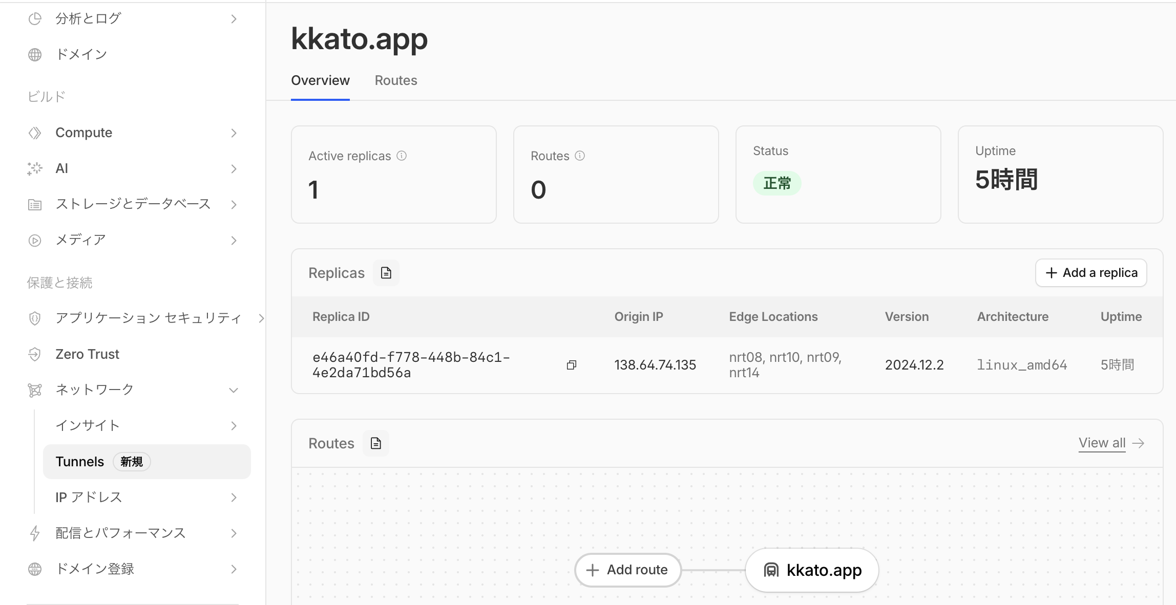 トンネル名を入力します。ここでは kkato.app としました。
